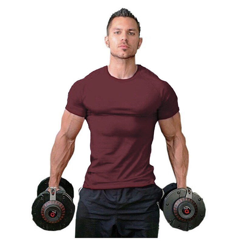 These comfortable gym t-shirts is featured with a slim fit, solid color, round neck and short sleeve design, basic fitness t shirt.